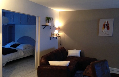 It includes a bedroom, a living room (convertible sofa) dining room, an integrated kitchen (fully equipped: oven, dishwasher, microwave, senseo, toaster, raclette machine) and a bathroom with shower and wc separated.