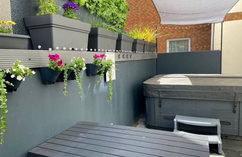 No.3 of 5 apts in stunning new build on Ilfracombe seafront/SW Coastal path. Close to harbour, the Tunnels & town centre. Basement parking for 1 car (+public parking opposite). Free EV charging. Dog friendly. Secure storage for bikes etc. Apt3 has living/kitchen/diner, 3 bedrooms, 2 ensuites, 1 family bathroom, underfloor central heating throughout, washer/dryer, Smart TV. 6 guests max. In addition to the large balcony overlooking the beach, Apt3 has a private hottub and small courtyard to the rear.