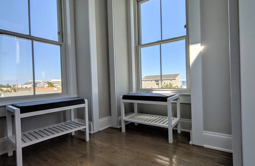 The reverse living home has a three-stop elevator. The house includes beach chairs, beach umbrellas, beach carts, and 10 beach badges. The home is located 1 street south of a handicapped beach entrance and lifeguard stand, and is serviced free of charge by the Long Beach Township Gator program for those who have difficulty walking on the sand.
