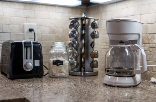 The bedrooms are great size for you and your family to make yourselves at home. The master suite features a very comfortable large king size bed with 1000 thread count sheets. Here you can watch any of your favorite shows on the TV or access the magnificent backyard from the sliding glass door. This room also features a large attached bathroom with a his and hers sink with a mirror over one sink and a makeup mirror over the other. There is an amazing walk-in shower in this bathroom with a Bluetooth speaker built in to enjoy your time getting ready. The master also has ample closet space to unload your bags into. In this closet you will find the top of the line air mattress with its bedding items and the pack-n-play with baby monitor for the little travelers in your life.