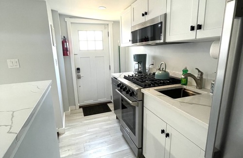 • Fully equipped kitchen with quartz countertop and all new stainless-steel appliances (dishwasher, refrigerator, stove, oven, microwave), plates, bowls, cookware, utensils, cups, coffee mugs, wine glasses, toaster, blender etc. Spices for cooking.