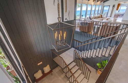 Live like a local in this spectacular newly remodeled Ocean Front private beach estate (no shared walls!) in the laid back community of Encinitas. With 50' of ocean frontage & arguably some of the best views including direct views of Moonlight beach, this modern gem is just 5 houses with super easy beach access (no stairs!) to white sandy surf/swim friendly beach. Other highlights include 2 levels, 4br including lower level casita, 4ba, sleeps 9, ~4,000sf of indoor/outdoor space with 3 separate outdoor lifestyle zones, indoor/outdoor SONOS system, 4 indoor TV's + outdoor TV, 2 fireplaces, built in BBQ, 2 washers + 2 dryers, 3 outdoor showers, soaring ceilings, & 3 car parking. Sleeps 14 (10 adults max) *Note no A/C in this home, fans are provided.