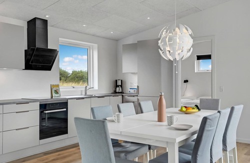 In the rolling, hilly landscapes of Hjarbæk Fjord you will find this beautiful vacation home. The interior offers a modern, tasteful interior and a bright, open atmosphere that invites you to feel at home. Enjoy meals at the dining table overlooking the fields or dine al fresco at the garden table during the warm, bright summer evenings.