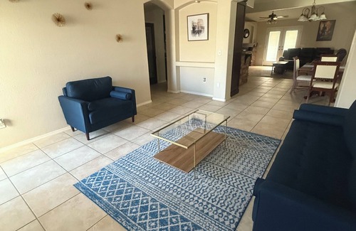 A beautiful charming home in the Big City in the desert. Located in El Paso, enjoy what this 4-bedroom house has to offer. With 1 king bed, 1queen beds, and 2full beds, guests will have plenty of space to relax. The 3 bathrooms feature a bathtub, jetted bathtub, and two showers for ultimate comfort. Experience the magic of El Paso at our terrific house. Kitchen is loaded with all the small appliances you need. All furniture is brand new.Home is very clean.