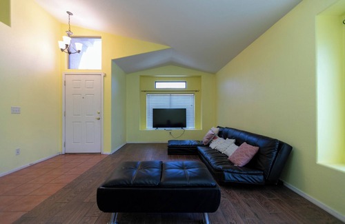 Welcome to this charming 4-bedroom Tucson retreat, designed for relaxation and convenience. With 3 queen beds and 1 luxurious king bed, the space comfortably accommodates families or groups seeking a memorable stay. Enjoy modern comforts, including central AC & heating, high-speed WiFi, and a full laundry setup—everything you need for a seamless getaway.