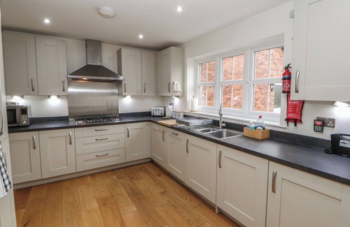 4 Centurion Rise consists of a kitchen/diner with electric oven, gas hob, microwave, fridge/freezer, dishwasher, washing machine, kettle, toaster, and dining seating for six people, dining room with dining seating for eight people, sitting room with Smart TV, and snug with sofa bed. The bedrooms consist of a king-size, king-size with en-suite shower room, double, and double with en-suite shower room, serviced by a bathroom and cloakroom. Outside, there is a rear garden with lawn, patio, and furniture and off-road parking for four cars. Sorry, no pets and no smoking. Travel cot and highchair available. You'll find a shop in 0.6 miles, pub in 0.9 miles, and lake in 0.7 miles. WiFi, fuel, power, bed linen, and towels are included in the rent. Stay at 4 Centurion Rise for your next picture-perfect holiday.