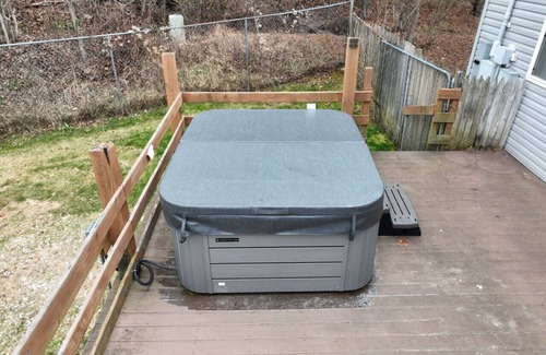 The large deck is perfect for enjoying the beautiful scenery. The fenced in back yard is perfect for time with your pets during your stay! The house is located next to the road making all-wheel drive not a necessity when stay here!
