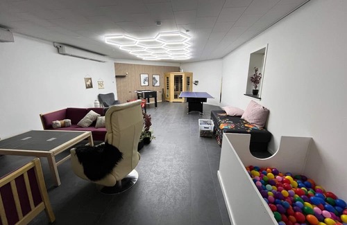 This newly renovated apartment of 120 m² offers a modern and comfortable base for your holiday. Centrally located for excursions to popular destinations such as Legoland, Lalandia, the North Sea, etc it is the ideal location for both relaxation and adventure. The apartment offers a number of facilities that ensure entertainment and well-being for all ages. With a pool table, table football and air hockey, there is plenty of opportunity for fun and competitive activities. For those seeking relaxation and well-being, the apartment offers an infrared sauna, ideal for sore muscles. As an added bonus, guests have free access to a water park and 1 hour of free bowling per stay. day, which is perfect for a day full of fun and water activities. This apartment is ideal for families who want to combine relaxation with fun activities and exciting excursions.