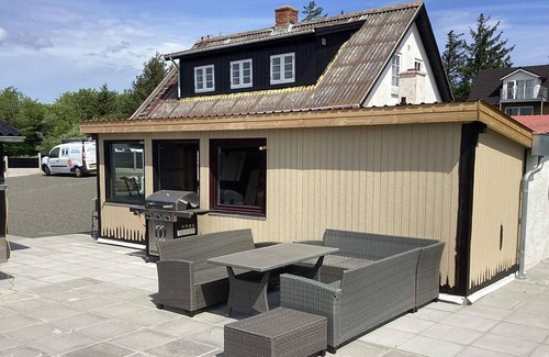 Layout: Annex: (4x bunk bed) Kitchen(cooker(2 ring stoves), coffee machine, oven, microwave, dishwasher, fridge, freezer(1-59L), freezer(> 250L), fridge-freezer, high chair), Living/bed room(TV(german television channels, danish TV channels (DR1 and TV2), norvegian TV channels , swedish TV channels)), bedroom(2x single bed), bedroom(2x single bed), bedroom(2x single bed), bathroom(floor heating)(washbasin, shower, toilet, washing machine), garden furniture, sun loungers, table tennis table, table football, air hockey, darts, billiards