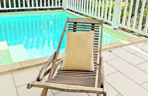 Dive into our small swimming pool, ideally located under the gallery to shelter you from the sun while enjoying the view.