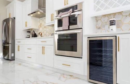 Endless family fun awaits at this Davenport vacation rental! Nestled in a gated community, this 5-bedroom, 4.5-bath home combines luxury with privacy. Dive into the outdoor pool, enjoy a BBQ on the screened-in lanai with the gas grill, and whip up home-cooked meals in the modern kitchen. Along with access to top-notch amenities, you’ll be just a short drive from Disney World and other Orlando attractions, including Universal Studios and SeaWorld Orlando.