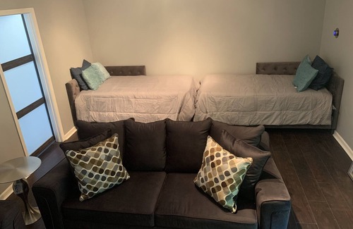 Home is in a quiet established neighborhood. The perfect space for backyard entertaining with family and friends. Home had an oversized decked backyard with double barrel grill and basketball court. There is ample seating, a full game room with pool table, air hockey, Pac-Man and mortal combat. Home is furnished with contemporary furnishings and comfortable bedding. NO PARTIES OR LARGE GATHERINGS.