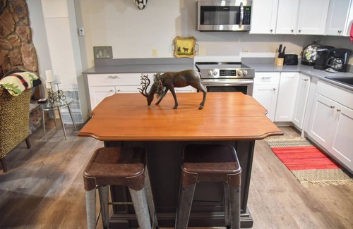 #1: Upon entry into this lovely home you will walk into our open concept living room with a fold out sofa, a gas fireplace, flat screen TV, half bath housing the washer/dryer, and the updated kitchen with clean counter tops and stainless steel appliances. Up the stairs you will find 2 bedrooms and a full bath to share. The master bedroom houses a King sized bed, a Twin Bunk Bed, flat screen TV, and a private East facing balcony looking towards the Red River Ski Area's "Face" with the Red River that flows to the right across the lot. The guest bedroom features a queen sized bed and flat screen TV. This home is complete with Fiber Optic Wi-Fi and satellite TV so when you want to kick back and enjoy your evenings after a fun filled day then you have the amenities to do so... This home has gorgeous views from each of the decks/balconies.