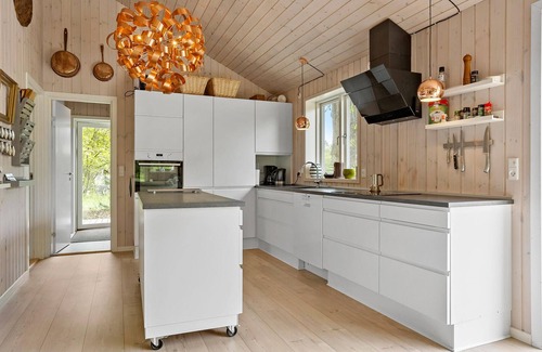 Experience a holiday close to nature in this cosy holiday home, the ideal place for quiet time-outs, cooking together and relaxing hours outdoors. The bright, open-plan house impresses with its tasteful furnishings and warm wood tones. The living area offers a comfortable sofa, large windows and direct access to the terrace. Use the wood-burning stove for cosy evenings or gather with family and friends at the dining table with a view of the natural surroundings. In the elegant kitchen with kitchen island, you can prepare your favourite dishes in no time at all. The open-plan layout creates a relaxed atmosphere in which to linger.