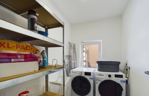 This 2-bedroom, 1-bathroom rental features air conditioning and a desk. Enjoy the WiFi and Smart TV. Bathroom amenities include a hair dryer, towels, and toilet paper. Prepare a home-cooked meal in the kitchen, complete with an oven, a stovetop, and a refrigerator, as well as a coffee maker, an electric kettle, and a microwave. And you won't have to pack extra clothes, because you'll have a washer and dryer, too. Other amenities include bed sheets, an ironing board, heating, and a desk chair.