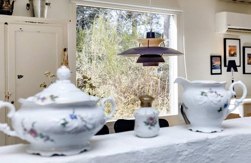 Bright and well-kept cottage located on a large natural plot in quiet, scenic surroundings in the small fishing village Nr. Lyngby a little north of Løkken. The house is located at the end of a cul de sac and thus completely undisturbed. The house was completely modernized in 2012. It contains a living room / kitchen in open connection, two bedrooms and a bathroom with shower and underfloor heating. The living room is bright and well-appointed with furniture in the well-known Danish holiday home style, where the owner has managed to match new and retro furniture with a sure hand. The result is a very well-functioning living area with good light and very good space for cosiness and togetherness. On the terraces around the house you can stay undisturbed and find both shelter and sun. From here there is direct access to the large, completely undisturbed natural plot. For cheap heating, the house is equipped with both air-to-air heat pump and wood stove. There is a large extra fridge / freezer in the shed. Not for rent to youth groups. If you are several families who want to leave together, then the house next door can also be rented. See under house number 08439.