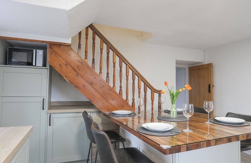 5 The Crescent has a kitchen/diner, sitting room, double bedroom, twin, and bathroom. Appliances consist of an oven, hob, microwave, fridge/freezer, dishwasher and TV. Outside there is a rear garden with lawn, patio and furniture, and roadside parking, on a first come, first serve basis. Two well-behaved dogs welcomed at a supplement, but sorry, no smoking. WiFi, fuel, power, bed linen and towels are all included in the price. You'll find a shop in 3.3 miles, a pub in 0.1 miles, and beach in 1.4 miles. Enjoy the beauty of Gwynedd from 5 The Crescent. Note: There are steps to the exterior and a steep staircase; please take care. Note: Check-in from 4pm, check-out by 10am. Note: There is a good housekeeping bond on this property.
