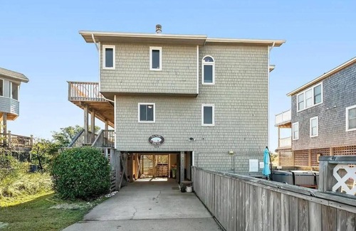 Relax with the whole family at this peaceful beach house getaway. The beach is only six houses away. You can literally walk there in 2 minutes. With the house at the end of the housing development, there are no neighbors behind you, and that means a less crowded beach as well. Sandy Pause is a great place to enjoy the views from the Ships Watch, relax in the jacuzzi room, or enjoy a meal in the screened in porch. Deck, swing, hammock, pool, and hot tub allows everyone to relax.