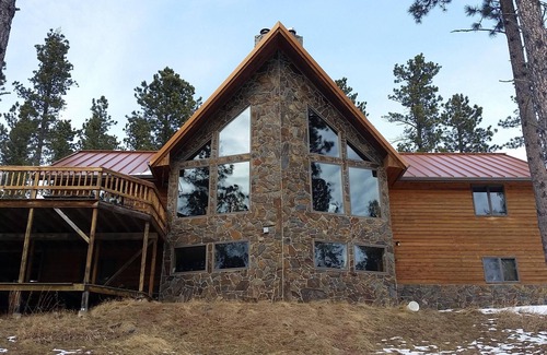 Inside our newly remodeled home, you will have a peaceful panoramic view through the 15 foot, A-frame style windows of Custer Peak and the Black Hills from the great room. At night, our large slate fireplace offers romantic evenings. Pets are NOT allowed, No Smoking.