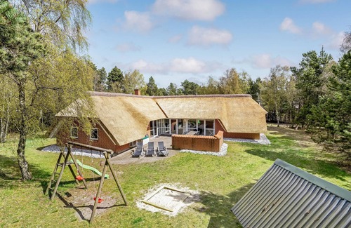 Relaxing vacations in this beautiful vacation home on one of the most beautiful heather-covered and tree-fenced, view-protected plots of the island of Rømø becomes with this new construction from dream to reality. Best equipped and with a total of 6 bedrooms for 14 pers. with 3 bathrooms with toilet you can use as a vacation home with the whole family or all friends, so that a perfect vacation is pre-programmed. Whether you are looking for relaxation in the pool, in the whirlpool for up to 5-6 pers in the sauna or on the spacious terrace, there is enough space for everyone! Should it ever get chilly, just light a fire in the fireplace. We have also thought of the children. A sandbox, a swing and a playhouse are available. The island is part of the Wadden Sea National Park, which is a popular place to visit.