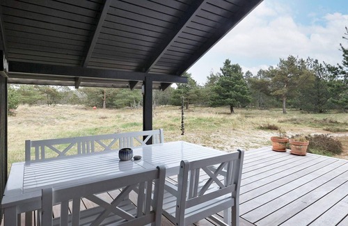 Layout: Sitting room(double bed), Kitchen(cooker(electric), coffee machine, freezer(1-59L), fridge-freezer), Living/bed room(TV(danish TV channels (DR1 and TV2)), high chair), bedroom(double bed), bedroom(double bed), bedroom(2x bunk bed), bathroom(washbasin, shower, toilet, washing machine), heating(electric), terrace, garden furniture, air to air heatpump