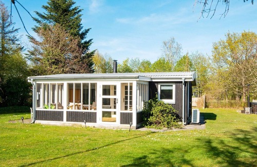 Layout: Kitchen(cooker(electric), hood, coffee machine, dishwasher, fridge(+ freezer)), Living/bed room(single folding bed, TV(german television channels, danish TV channels (DR1 and TV2)), radio, high chair), bedroom(double bed, children's bed), bedroom(double bed, bunk bed), bathroom(floor heating)(tumble dryer, washbasin, shower, toilet, washing machine), conservatory, heating(electric), garden furniture, air to air heatpump
