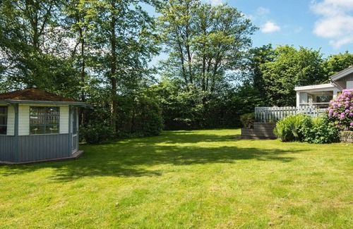 Layout: Kitchen(cooker(electric), hood, coffee machine, fridge, freezer(1-59L)), Living/bed room(double folding bed, TV(german television channels, danish TV channels (DR1 and TV2)), stereo unit), bedroom(2x single bed), bedroom(2x bunk bed), bathroom(washbasin, shower, toilet, washing machine), balcony or terrace, heating(electric), terrace, garden, air to air heatpump