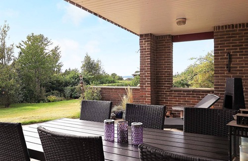 Layout: Annex: (double bed) Kitchen(cooker(electric), coffee machine, microwave, dishwasher, fridge(+ freezer)), Living/bed room(TV(german television channels, danish TV channels (DR1 and TV2), norvegian TV channels , swedish TV channels)), bedroom(double bed), bedroom(double bed), bedroom(single bed), bathroom(washbasin, shower, toilet), heating(electric), terrace, garden furniture, sun loungers, air to air heatpump