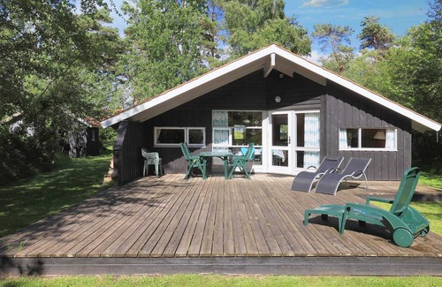 Holiday home located in beautiful and scenic surroundings in a holiday home area in Gedesby, only approx. 150 meters from the lovely beach. The house sleeps in three rooms with a bunk bed for 2 people, 1 double bed and a room with 2 single beds. The kitchen has i.a. microwave and refrigerator with small freezer. The house has a good living room, living room and two lovely terraces. Fantastic good grounds with peace and space for ball games and play as well as just enjoying the sun on the large terrace. Not for rent to youth groups.