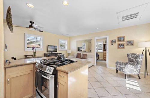 This villa is ideal for the traveler who likes to spend daytimes on the move or at the beach, but still longs for a beautifully appointed space to come home to. Distinguished by natural wood hues, this 3/4-bath, one-bedroom villa's interiors are offset by tasteful splashes of ocean blue. When hunger strikes, the private patio makes for a blissful barbecue spot or choose to dine inside instead, using your well-equipped kitchen with full appliances.