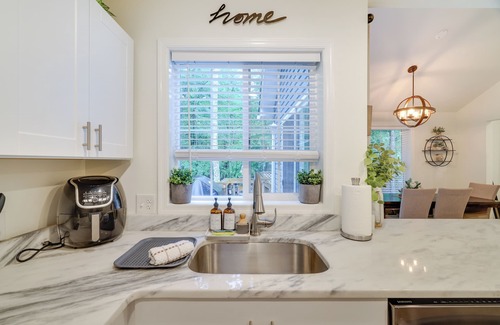 KITCHEN: Fully equipped w/ stainless steel appliances, cooking basics & spices, drip coffee maker, Keurig, air fryer, breakfast bar w/ seating, coffee & tea provided, dishware & flatware