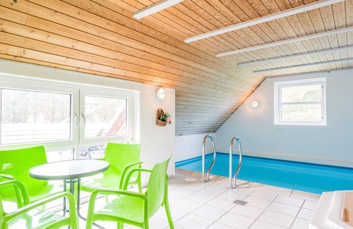 MAX 2 DOGS - HEAT PUMP T / POOL = ENERGY FRIENDLY HOUSE Pool size: 7.0 x 3.0 x 1.35 m. - Nicely surrounded by trees and on a completely enclosed plot, we have a beautiful pool and activity house. The kitchen and living room are in open connection with each other, from which there is access to a cozy enclosed terrace. From the dining area there is a view to the spacious pool room, where the spa is also located only shielded by a glass door. All bedrooms appear bright and with a good view of the grounds. In 2020, the house has an activity room with both billiards, air hockey, table tennis and home bar. At many times of the year, there is plenty of opportunity to look at the forest animals - such as deer, etc. A nice house, with many opportunities for relaxation both in the sauna, the pool and the spa. Our little guests are also thought of in the form of both swings, play structure, trampoline and climbing wall. Free final cleaning!