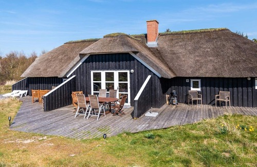 CHANGE DAY FRIDAY - Here is cosiness and charm in a really well-kept and well-equipped Pool House. The cottage on Fanø is located on a lovely sheltered natural plot in the beautiful area by Sønderho and with a view to Sønderho Mill. Here are 4 good bedrooms with room for 8 people, a nice kitchen with everything in equipment and a large living room with both dining area, wood stove and cozy corner with i.a. home cinema with surround system, DVD and game options. The large pool and spa area with sauna and additional bathroom has direct access to the terrace, which invites to many cozy hours. There are several terraces around the beautiful cottage, and a sun and shelter can always be found. Denmark's most beautiful village and the cultural gem Sønderho, is within walking distance and the beautiful old and listed buildings in the crooked streets invite for pleasant walks. Holiday home with pool on Fanø on the West Coast. Dog is allowed. Free final cleaning!