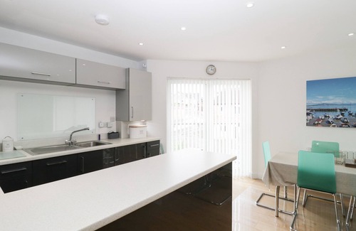 9 Mitchell Gardens is a first-floor duplex apartment resting in Axminster in Devon. Hosting two bedrooms; a second-floor king-size balcony, and a first-floor family room with single and bunk bed, along with a second-floor bathroom and a first-floor cloakroom, this property can sleep up to five people. There is a first-floor open-plan living space with a kitchen, dining area and sitting area, designated parking is available for one car. 9 Mitchell Gardens is a contemporary apartment in the bustling market town of Axminster.