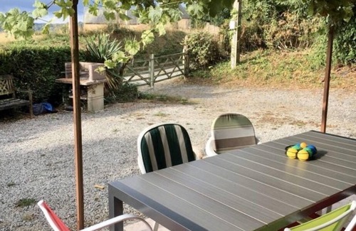 A complete getaway. A stone cottage set between farm and fields, this house offers peace and calm in a beautiful natural setting. The terrace is a perfect place for sunny breakfasts of croissant from the local boulangerie and candlelit suppers or card games with only the occasional cow for company. Traditional stone kitchen and sitting-room with log burning fire create a relaxing environment. The garden is great for kids to play football, table tennis, badminton and set up tents for overnight adventures. There are tennis courts and horseriding facilities nearby and amusement parks with go-karting, skating, trampolining, laser quest, treetop climbing and rides. Soft sandy beaches are a 20 minute drive away at Brehal and Granville. Historic places like Mont Saint Michel, Bayeaux and the Normandy landing beaches and museums provide interesting day trips.