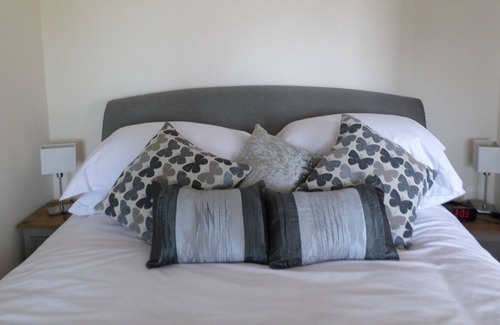 The bedroom is furnished with a 5ft double bed and prepared with boutique quality linens.