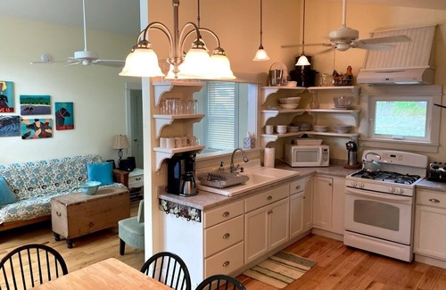 Charming describes what you will find when you arrive at Charmante-on-Cayuga. A quaint cottage with a large eat-in kitchen, a deck over looking the lake and a private beach. Charmante-on-Cayuga just completed a full renovation in May of 2012. Just twenty steps down a gentle incline takes you to the waterfront. Enjoy a peaceful vacation at one of widest points on Cayuga Lake. Charmante-on-Cayuga is perfectly situated for family outings, walking, biking, touring wineries or just sitting on the dock. In the early morning one can hear the fish jump or the birds chirping. In the evenings, enjoy the stunning sunset while taking delight in the company of family and friends.