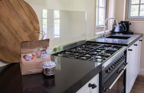 This robust, designer farmhouse was built with traditional elements such as a thatched roof, oak rafters and barn doors. The luxurious interior provides the comfort you would expect. On the first floor, you will find a spacious living kitchen and living room. The farmhouse kitchen is equipped with everything you would expect from a private villa.