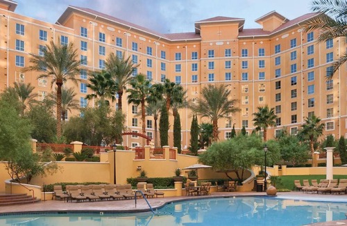 A Mediterranean-style vacation retreat just one mile from the Las Vegas Strip, the three towers offer exceptional views of the dazzling Las Vegas skyline, desert mountains, and the resort's lush courtyard. Lounge by the resort pool, pick up a coffee from the on-site Starbucks, or grab a bite to eat. Outside the resort, you can enjoy outdoor fun at picturesque locations like the Grand Canyon, Lake Mead, and Red Rock Canyon. Plus, catch the famous fountain show at the Bellagio. Indulge in local cuisine. Or place your bets at popular casinos on The Strip — like Caesars Palace, Harrah's Las Vegas, and Flamingo