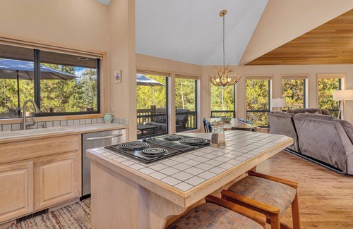 Welcome to Rocky Mountain 9, and beautifully maintained home in a quiet neighborhood on the North side of Sunriver. Easy walking, or biking distance to tennis courts and the Sunriver Marketplace grocery store, this home is sure to fit all your vacation needs. Enjoy the tranquility of the natural beauty from the large deck overlooking the pine trees, or star gaze from the outdoor hot tub located on the private deck outside the master bedroom. With so much to offer, this home does not disappoint.