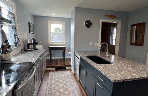 Come enjoy comfort, convenience and ocean breezes in a newly renovated kitchen, where you can dine in the breakfast nook, the kitchen island or outside on the new side deck. With an open dining/living area, bathrooms on both floors (half bath downstairs and full bath with a large walk-in shower upstairs) and three bedrooms upstairs (two queen beds and 2 twin beds) there is plenty of room to spread out. Orr's also has all new floors throughout the house (brand new furniture is yet to come) and a wrap-around yard making it a great spot for a romantic getaway or a small family gathering right on Harpswell's amazing coastline.