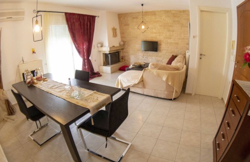 It is a first- floor apartment of 90sqm with two large bedrooms, a living room, a kitchen, that includes all the necessities for the preparation and preservation of meals, a bathroom, storage room, and balconies around. Garden and Barbecue are available to enjoy a coffee, drink or peaceful rest. There are two air conditions, one in the living room and one in the bedroom. The second bedroom has a fan. Τhere is plenty of space outside the courtyard for parking. There are three additional apartments with permanent tenants. It is a very quiet area, cars do not pass. It lays 300 meters from the beach with umbrellas, deck chairs, and various shops. There are coffee shops, taverns, supermarkets, pizza and souvlaki shops, rental offices for cars, motorbikes and bicycles, souvenirs, every day open. 200 meters from the apartment there is a bus stop where you can plan your movement for the entire Cretan island. Βuses pass every 20 minutes. For walking, there is a large beach and relatively close to the Rozas and Panagia gorge. Heraklion and Hersonissos are 15 km away. The airport is 8,5 km away, with the possibility to get to the apartment by bus, taxi or I can transfer you, after an agreement. My apartment is next to yours and I will be able to welcome you and help you with any questions you may have.