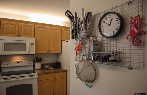 The Kitchen layout is perfect with loads of countertop space for prep and a breakfast bar with two bar stools. Kitchen comes completely equipped with all appliances, cookware, tableware and dishware. There's a full sized washer/dryer in the laundry area adjacent to the Kitchen.