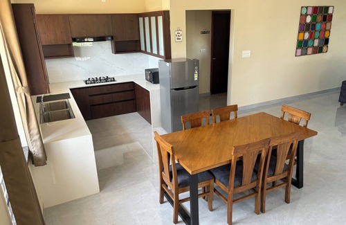 Discover luxury in our two beautiful villas, each with four bedrooms and attached bathrooms. Unwind in stylish living spaces with flat-screen TVs, cozy couches, and stay connected with complimentary WiFi. The fully equipped kitchens and spacious dining areas make every meal a delight. Step into the front garden or relax in the green space between the villas. Your perfect escape awaits in this luxurious haven.