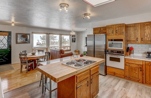This well-maintained home has everything you need with a fully equipped kitchen, butcher block countertop, stainless-steel breakfast bar, and oak dining table to seat six. The open concept design of this property makes it easy to socialize with one another for conversations, laughs and memories. The living room is full of natural light and offers large windows to soak in those amazing views.