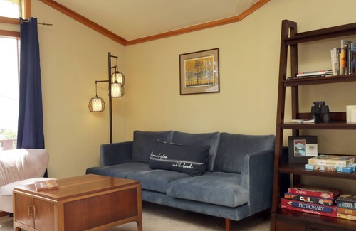 Meanwhile, the oversized backyard is perfect for lawn games. It’s not fenced, but your furry friends will love the off-leash parks and trails nearby. Admiral’s Nest is located just outside Ebey’s Landing National Historical Reserve, which preserves the gorgeous scenery and gives you plenty of options for bicycling, hiking, birdwatching, and scenic drives.