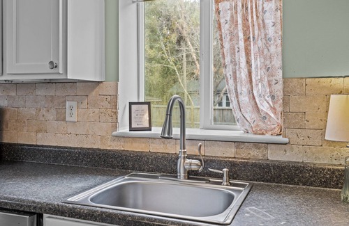 This home offers a fully equipped kitchen, with a pleasing aesthetic and lots of utility, with spacious countertops and high-quality appliances, including a coffee maker! A wooden dining table can seat around five guests, giving you a place to take your meals inside, from quick breakfasts to sit-down dinners. The laundry is also conveniently located just off the kitchen, and a shared full bathroom.