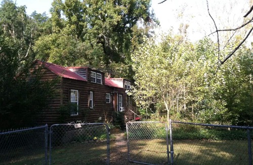 Outside there is a large yard with access to a stream in the woods, a picnic table, and outdoor table with umbrella. Parking is just off the road in front of the cabin’s fence. Only 3.5 miles from the small town of Mena, Arkansas, on paved road.
