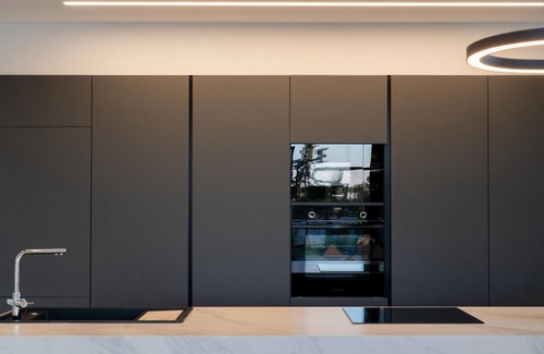 Step inside this modern, minimalist-designed villa and discover an elegant open-plan living space. The stylish dining area, which seats 10, flows seamlessly into a fully equipped kitchen featuring top-of-the-line appliances. The spacious living room invites you to relax on plush sofas while enjoying entertainment on a large smart TV. Expansive glass doors open directly to the pool area, blending indoor luxury with the beauty of the outdoors.