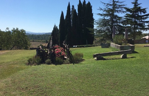 Chiesone 1 is a comfortable apartment located on the ground floor, consisting of a large living room with open kitchen, a double bedroom, a bedroom with two single beds and two bathrooms with shower. The apartment can be combined into a single unit with the above Chiesone 2. It also has an outdoor area equipped with a parasol, table and chairs. Located in an ancient sixteenth-century residence built by Carlo Lodovico de ’Piccolomini, nephew of Pope Pius II, Maciangrosso preserves the charm and charm of a past rich in memories. Located on the natural bastion that closes the Valdichiana to the south, the farm house is immersed in the tranquility of a centuries-old park: a maze of box hedges, a typical Italian garden, winds through severe cypresses and tall cedars.